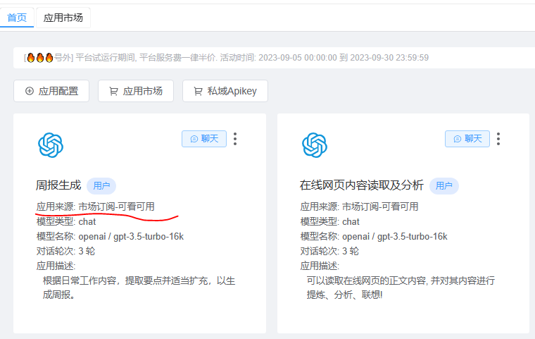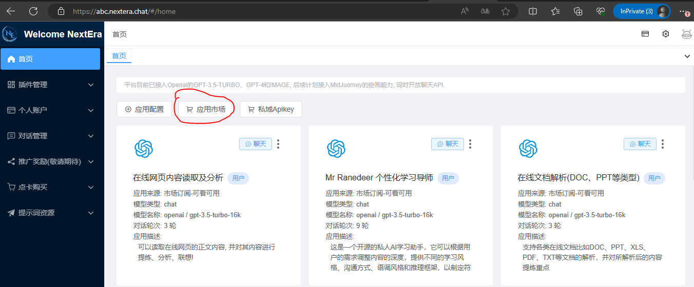 NextERA里的应用有二类:一类是自己配置的个性化应用,可以按实际需要灵活配置相应的模型、系统指令、插件等等;而另一类是从应用市场里订阅的应用,该类应用在上架到市场的时候已经预设了模型、指令、插件,所有订阅用户使用的效果是一致的。当然您也可以查看所订阅应用的配置信息,根据配置信息复制一份自身的个性化应用。NextERA官方所上架的应用,使用期间不会产生任何额外费用。