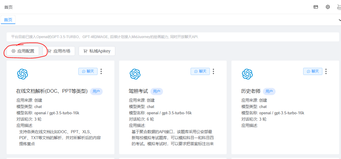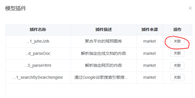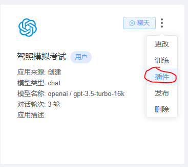 可以通过插件,将应用和插件进行关联(目前四个应用关联了插件:驾照考试、在线网页解析、在线文档解析、实时内容搜索)