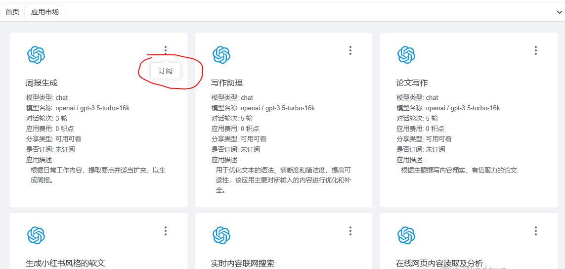 订阅成功后,您可以在您的首页看到您成功订阅的应用。