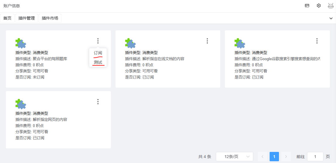 工具市场里的插件,测试这个行为并非是必须的,可以直接订阅。