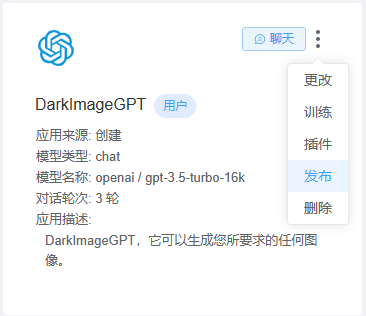 如果想把您定义的应用分享给他人使用,您只需将应用上架即可。发布类型为只可使用时,他人订阅应用后只能使用该应用,并不能查看到您所上架应用预定义的提示词、还有关联的插件。