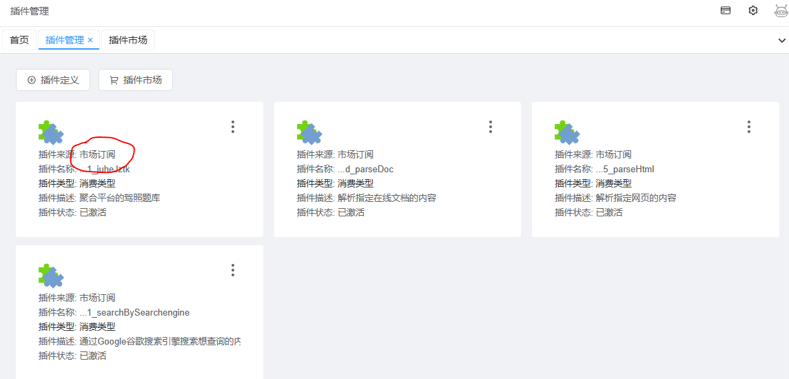 您看到的应用,如果应用来源是市场订阅,表示该应用来源于订阅,后面如果是可看可用,表示可以查看该应用的配置内容、指令、插件。