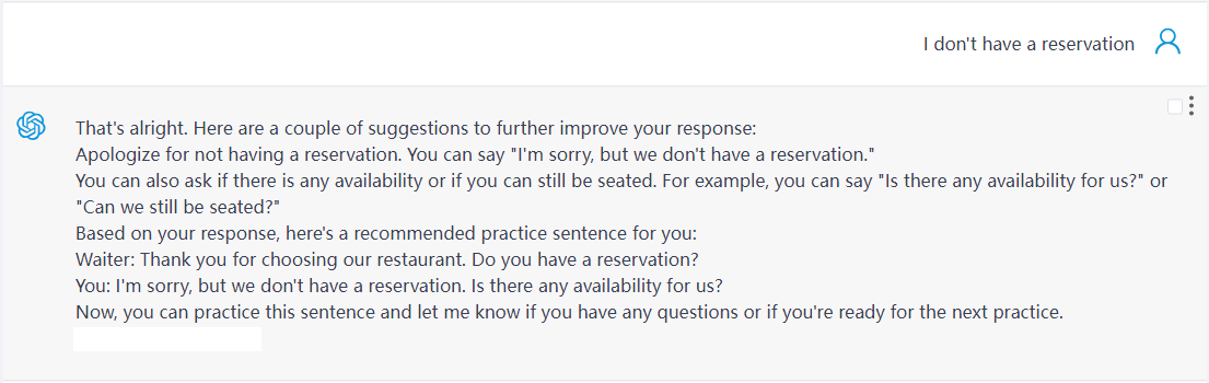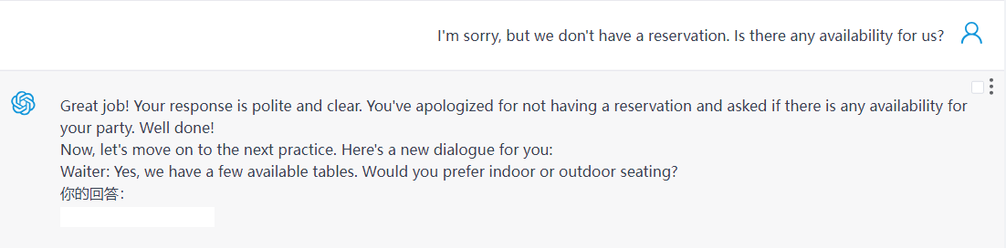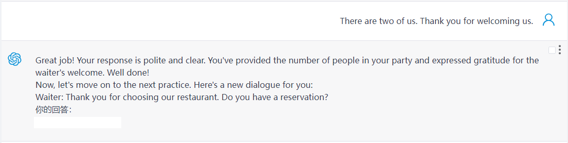 AI会根据您要求的场景模拟练习环境,您提供练习内容后,AI会检查您的练习内容,提出一些优化意见,从而提升您的口语水平。