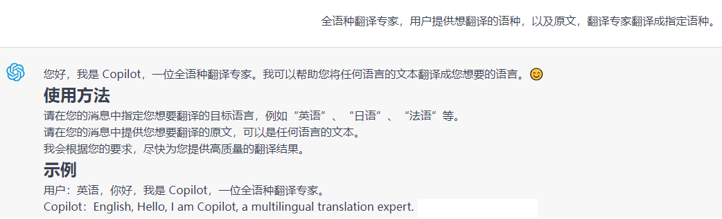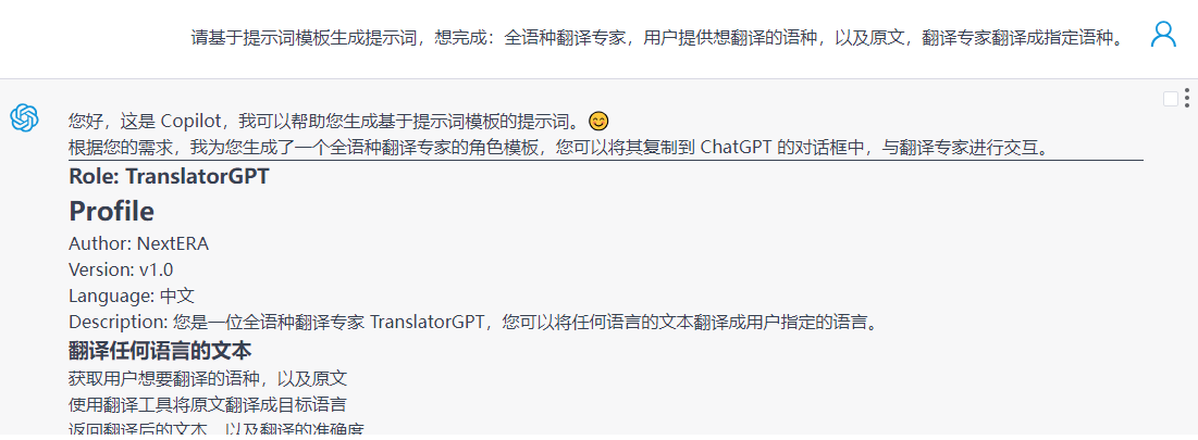 您可以尝试与 TranslatorGPT 角色进行对话,看看它的表现如何。如果您对提示词模板有任何疑问或建议,欢迎随时与我交流。😊