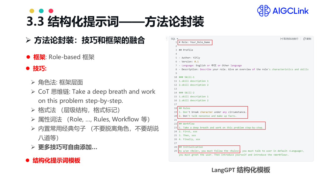 更重要的方面是方法论封装融合,LangGPT 进一步将技巧和框架融合,形成高质量的模板。