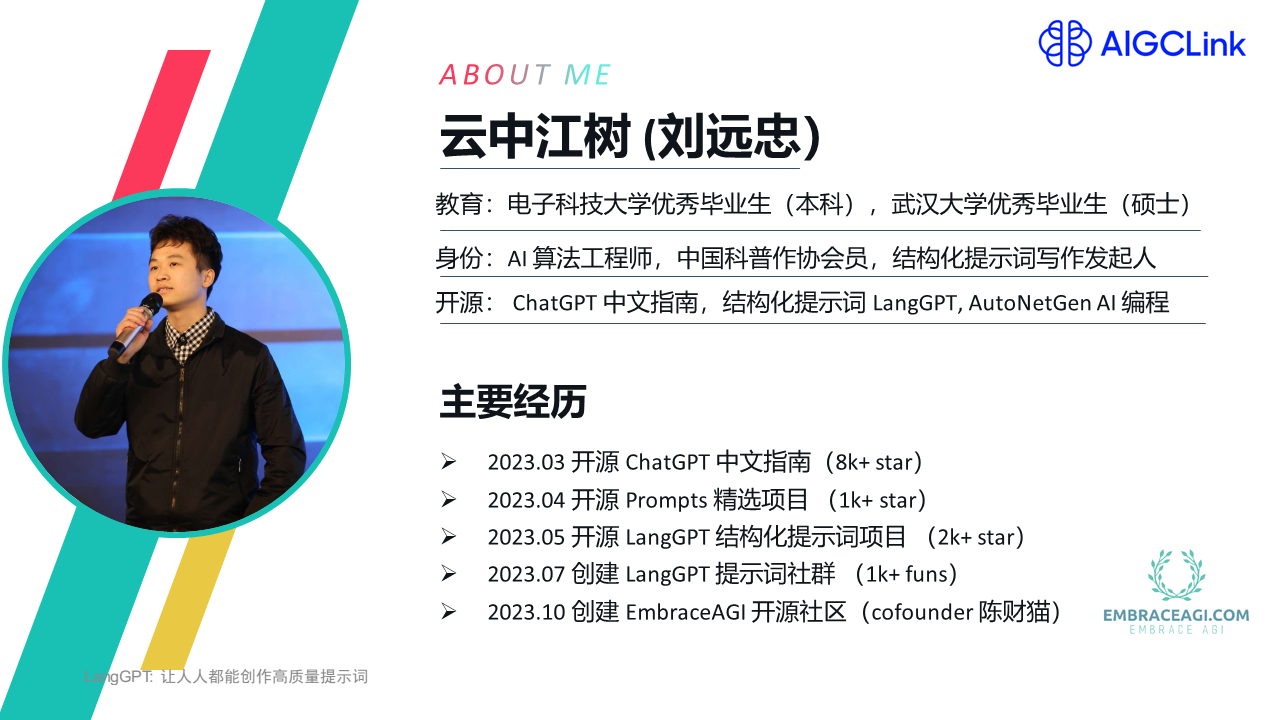Hello, 大家好,我是云中江树,谢谢占总 (占冰强,微信bing3qiang) 为大家提供这么好的一个交流机会,很高兴今天能为带来提示词方面的分享。